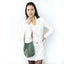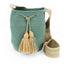 Base de couleur Vert Vintage, bandoulière tissée Camel et Vert et pompon bicolore