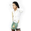 Ce modèle de taille moyenne arbore une base unicolore en Vert Vintage, un choix de couleur qui évoque à la fois le charme du passé et l'élégance du présent. La bandoulière tissée bicolore Vert Vintage & Camel ainsi que le cordon avec ses pompons bicolores sont conçus pour ajouter une touche de sophistication à ce sac.